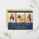 Graduation Party Modern Navy Blue and Gold 3 Photo Invitation Postcard