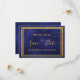 A Save the Date card for a Graduation Party party for a guy, man, male. A navy blue background decorated with golden confetti and a faux gold frame. The blue color is uneven. Personalize and add a date and name. Golden colored letters. The text: Save the Date is written with a large trendy hand lettered style script.