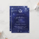 A navy blue background, decorated with faux glitter, sparkles. The blue colour is uneven. Personalise and add a name and party details. The text graduation and the name is written with a modern hand lettered style script.