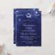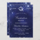 A navy blue background, decorated with faux glitter, sparkles. The blue colour is uneven. Personalise and add a name and party details. The text graduation and the name is written with a modern hand lettered style script.