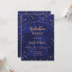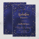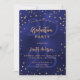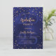 A glamourous invitation card for a graduation party for both him and her. A navy blue background decorated with faux gold stars. The blue colour is uneven. Personalise and add a year, name, year and party details. The text Graduation and the name are written with modern hand lettered style script. Golden coloured text.