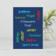What a wonderful, fun Graduation Party Invitation! On the front, your text repeats in different fonts and colours on a blue background. It's easy to modify NAME and TEXT on front; also easy to modify text on back. All Rights Reserved © 2014 Marcia Socolik.