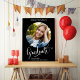 Add a touch of elegance to your celebration with this graduation party sign featuring a customisable photo template and stylish calligraphy script paired with modern typography. The timeless black and white design offers a simple and clean look, perfect for high school or college grads. Celebrate your graduate with personalised grad party decor that beautifully highlights the class of milestone. A chic and meaningful way to welcome guests!