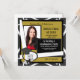 Trendy square graduation party invitation in black cap colour scheme with space for personal photo. Versatile design suitable for high school or college, male or female, easily adapted for announcement or ceremony invitation. Just edit your details in the easy Zazzle editor.