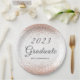 Celebrate the graduate with this elegant pink glitter paper plate. Easy to change the information.