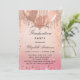 A rose gold and pink gradient background. Decorated with rose gold, pink confetti and balloons. Personalise and add a name and party details. The name and the text: Graduation are written with a hand lettered style script