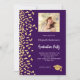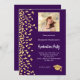 A modern, elegant Graduation party invitation. A purple background decorated with faux gold confetti. Personalise and add photo, a name and party details. White text.