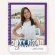 Personalized Graduation Party or Open House Guest Book and Advice and Wishes Book with Modern Script Name and Class Of Year Overlaid on a Senior Photo on the Front Cover – shown in purple, but you can change the background border color to match your school colors or grad party color scheme.