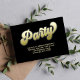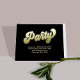 This design features a graduation QR code party invitation insert card, with a modern calligraphy minimalist template, a simple invitation insert, with a gold gradient typography lettering, with directions and map icon and details info information details, a grad party information info details, graduate high school or college, party invitation insert card, with a scan scannable QR code details, a gradient gold and black lettering