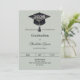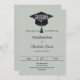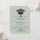 A modern and stylish muted sage green invitation for a graduation party. Decorated with a black graduation cap. Personalize and add a name, and the details.