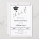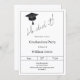 A modern and stylish invitation for a graduation party. Text: He did it! Decorated with a black graduation cap. Personalize and add a name and the details.