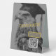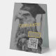 A memorable way to treasure life's events. Personalised graduation party tabletop sign with QR code featuring custom eagle grad design. Add your graduate's name and class year. Use the QR code for a website, college fund (among others). Easy to use template. Black and gold colour hues with eagle grad design. Enhance your graduation celebration. Use the template to personalise.