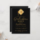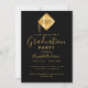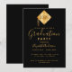 An elegant, simple invitation card for a graduation party for both him and her. A black background and a modern black abstract tassel topper in faux gold with the year inside. Template for name and party details. The text Graduation and the name are written with modern handlettered style script. Golden coloured text.