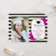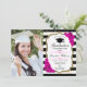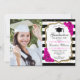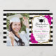 Graduation party invitation with your photo. Features black white stripes, script font, hot pink roses, tassel and confetti. Elegant black white design with faux glitter gold. Perfect for an elegant celebration.