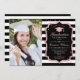 Graduation party invitation with your photo. Features black white stripes, script font, tassel and confetti. Elegant black, white design with faux glitter rose gold. Perfect for an elegant celebration.
