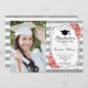 Graduation party invitation with your photo. Features stripes, script font, pastel blush pink roses, tassel and confetti. Elegant design with faux glitter silver. Perfect for an elegant celebration.