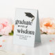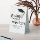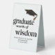 Graduation Party Words Of Wisdom Guest Advice table display. Have your family, friends and guests sign memory keepsake graduation Words of Wisdom cards. Modern typography with graduation cap. Monogrammed with graduates name and class of (year). Creative and unique party idea.