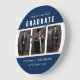 Graduation Photo Collage Congratulations Blue and White Custom Clock.