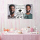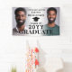 Modern graduation banner personalised with a name, a photo collage of the graduate, a congratulations message, the class, and a grad cap. Use this welcome sign inside for a high school or college graduation party, or outside to show everyone he or she has graduated. To change the photo placement: click on the button to customise it further, click on "crop", and move the image.