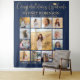 Add an elegant personalised touch to college or high school graduation party decorations with a custom photo collage backdrop. The pictures and all wording on this template are simple to personalise, and colours are easy to change with the Zazzle design tool. The navy blue and gold design features a faux foil graduation cap, trendy handwritten script calligraphy, chic modern minimalist typography, and any favourite photos of your choice, such as senior pictures or images from the commencement ceremony. Please note that gold is printed colour, not metallic foil. This large graduation party sign can be hung on a wall to welcome guests to the celebration or used as a fun and stylish photo booth backdrop. Congratulations to the graduate!