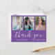Graduation 3 Photo Collage Purple Thank You Postcard. For further customisation, please click the "Customise it" button and use our design tool to modify this template.