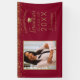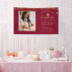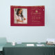 This custom graduation banner to celebrate your graduate features a photo on the left framed in faux gold accented by gold faux glitter on a red background.To the right in faux gold script it reads "Congratulations" and below "graduate Class of 2023" with your name and school to personalise. Designed by artist Susan Coffey