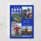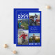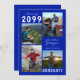 Editable royal blue and white graduation announcement with four photos and the graduate's name in a handwritten script font. The class year can be changed as well as the text font style, colour, size and placement. The back side has an optional text field to include additional information about the graduate (delete the sample text in that field if not desired).