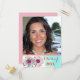 Graduation Photo Invitation Pink Blue Aqua Floral Postcard