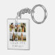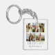 This simple and elegant boho-inspired keychain is a perfect way to celebrate a graduate. The design features a space for five photos, with "Graduate" displayed on the top line in a classic serif font. Below, there’s space to add the school name in soft script for a personal touch. The clean white background and soft grey text create a timeless and refined feel. Fully customisable, you can adjust the text, fonts, colours, and photos to make it a meaningful keepsake.