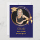 Graduation, photo, marine, gold, frame, grad hat invitation
