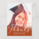 Thank your family and friends for their graduation gifts and well wishes with this elegant custom photo postcard. This chic design template features your photo with a burnt orange overlay at the bottom and a modern hand lettered white script which reads "Thanks" and your name, and class/year below. The back of the card has a thank you note and signature for your to personalize an a green background. Congratulations on your graduation! Designed by artist Susan Coffey.