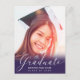 Announce your 2020 graduation to family and friends with this modern personalised photo grad announcement and party invitation postcard. This elegant design template features your photo with an purple overlay and a modern hand lettered white script which reads "Graduate" and your name, and class/year below. The back of the card has more of your graduation details with party invite for you to customise accented by a white graduation cap on an purple background. Congratulations on your graduation! Designed by artist Susan Coffey.