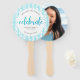 Stay cool while supporting your favourite grad as she receives her diploma, with this keepsake hand fan. The front boasts stunning, modern, sparkly faux turquoise glitter handwritten script calligraphy on a light turquoise and white striped background with faux turquoise glitter dots. Personalise the custom text with your grad’s name, high school, and class year. Her custom photo is on the back. Matching invites, thank you cards, cap toppers, napkins, plates and other graduation goodies are also available in this trendy and stylish collection. Guaranteed to preserve cherished memories of her special occasion!