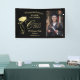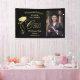 Elegant Black and Gold Graduation Party Photo Banner with faux gold foil look cap and streamers.