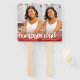 Stay cool while supporting your favorite grad as they receive their diploma, with this keepsake hand fan. Both the front and back boast bold, graphic, white typography and a brick red gradation overlaying a photo of your choice. On the front, personalize the custom text with your grad’s name. On the back, personalize with their school name and class year. Matching invites, thank you cards, cap toppers, napkins, plates and other graduation goodies are also available in this trendy and stylish collection. Guaranteed to preserve cherished memories of her special occasion!