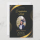 Celebrate a milestone with our modern and elegant graduation card in a stylish gold and black flourish. This customisable card allows you to add a personalised touch by including an image of the graduate, along with their name, the location and time of the graduation ceremony. The sleek design of the card provides the perfect backdrop to showcase the graduate's achievements and create a memorable keepsake for this special occasion.
