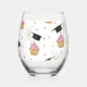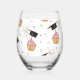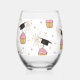 Graduation Pink Cupcake Graduation Cap Sparkler Stemless Wine Glass