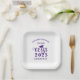 Celebrate and congratulate your graduate with personalised, custom graduation party or open house paper plates featuring your custom text (shown with CONGRATULATIONS NAME) and CLASS OF YEAR GRADUATE in retro decorative typography and school name or other text. All text, the graduation cap graphic and background colours are editable to change to school colours or coordinating party theme colours (shown in purple on white). PLATE OPTIONS: The sample is shown in the 7-inch square--other shapes and sizes are available on the ordering page. ASSISTANCE: For help with design modification or personalisation, colour change, resizing, transferring the design to another product or if you would like coordinating items, contact the designer BEFORE ORDERING via the Zazzle Chat MESSAGE tab below or email makeitaboutyoustore@gmail.com.