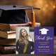 A classic custom photograph graduation thank you card in beautiful purple and gold for a high school, college, or university from the class of 2025. Customise with your school name and graduating class under the lovely calligraphy for an elegant personalised graduate photo card of thanks with your senior portrait.