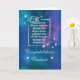 Celebrate the incredible achievement of earning a graduate degree with this beautifully designed card. The front features a bold "Congratulations, Graduate" alongside an inspiring message about the journey behind, the dreams ahead, and the love and strength that surround them. The elegant white lettering is framed with classic graduation symbols—a cap, diploma, and stars—set against a vibrant watercolor background of blue, purple, and green. A perfect way to honour the graduate’s dedication, perseverance, and bright future.