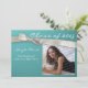 Graduation photo invitation or announcement in light teal with a pretty white bow. Customise with a favourite photo and add text as needed. All parts of this invitation are printed there is no actual bow attached.