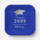 Graduation Royal Blue Silver Confetti Script Paper Plate