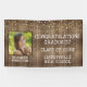 Welcome your graduation party guests and honour the graduate with this banner sign featuring their photo, name, school or university and graduating class year against a rustic, country, weathered wood background and yellow and white party string lights. PHOTO TIP: For fastest/best results, choose a photo with the subject in the middle and/or pre-crop it to a square shape BEFORE uploading and it will fill in the photo space perfectly.