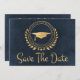 Graduation Save The Date Gold Grad Cap Blue Chalk