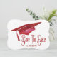 Beautiful, simple modern graduation save the date card to send to family and friends. Features a graduation cap with red watercolor look. Wonderful modern and simple card for saving a date for a graduation.