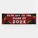 Creative class of 25 grad party banner featuring black and gold graduation caps and congratulations design on maroon background. To customise edit text to change senior class year.