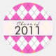 Round pink and orange argyle sticker. Perfect as a favour tag or envelope seal. Matching invitations are available in our shop at www.celebrateitgraduations.com