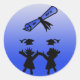 "We did it", "Happy Graduation" design of a girl and boy giving the high five with a blue gradient background.