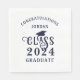 Celebrate and congratulate your graduate with personalised, custom graduation party or open house paper napkins featuring your custom text (shown with CONGRATULATIONS NAME) and CLASS OF YEAR GRADUATE in retro decorative typography and school name or other custom text. All text, the graduation cap graphic and background colours are editable to change to school colours or coordinating party theme colours (shown in navy blue on white) NAPKIN OPTIONS: The sample is shown in the 6.25-inch luncheon--other sizes and paper colours are available on the ordering page. ASSISTANCE: For help with design modification or personalisation, colour change, resizing, transferring the design to another product or if you would like coordinating items, contact the designer BEFORE ORDERING via the Zazzle Chat MESSAGE tab below or email makeitaboutyoustore@gmail.com.