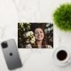 Celebrate your graduate with this simple photo invitation featuring gold foil scripted font with tassel. Options for photo in the back with graduation party details